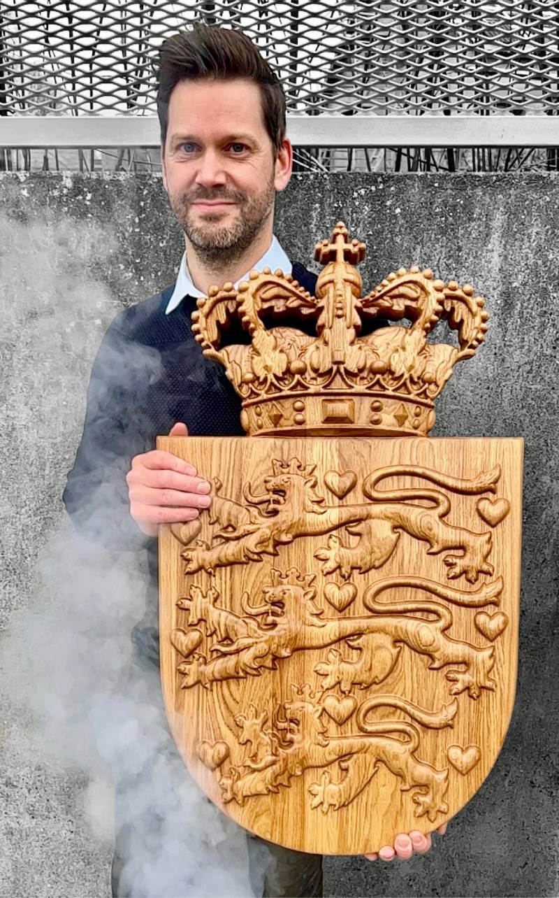Her er hele processen fra tegning eller maleri til et færdigt våbenskjold i træ.